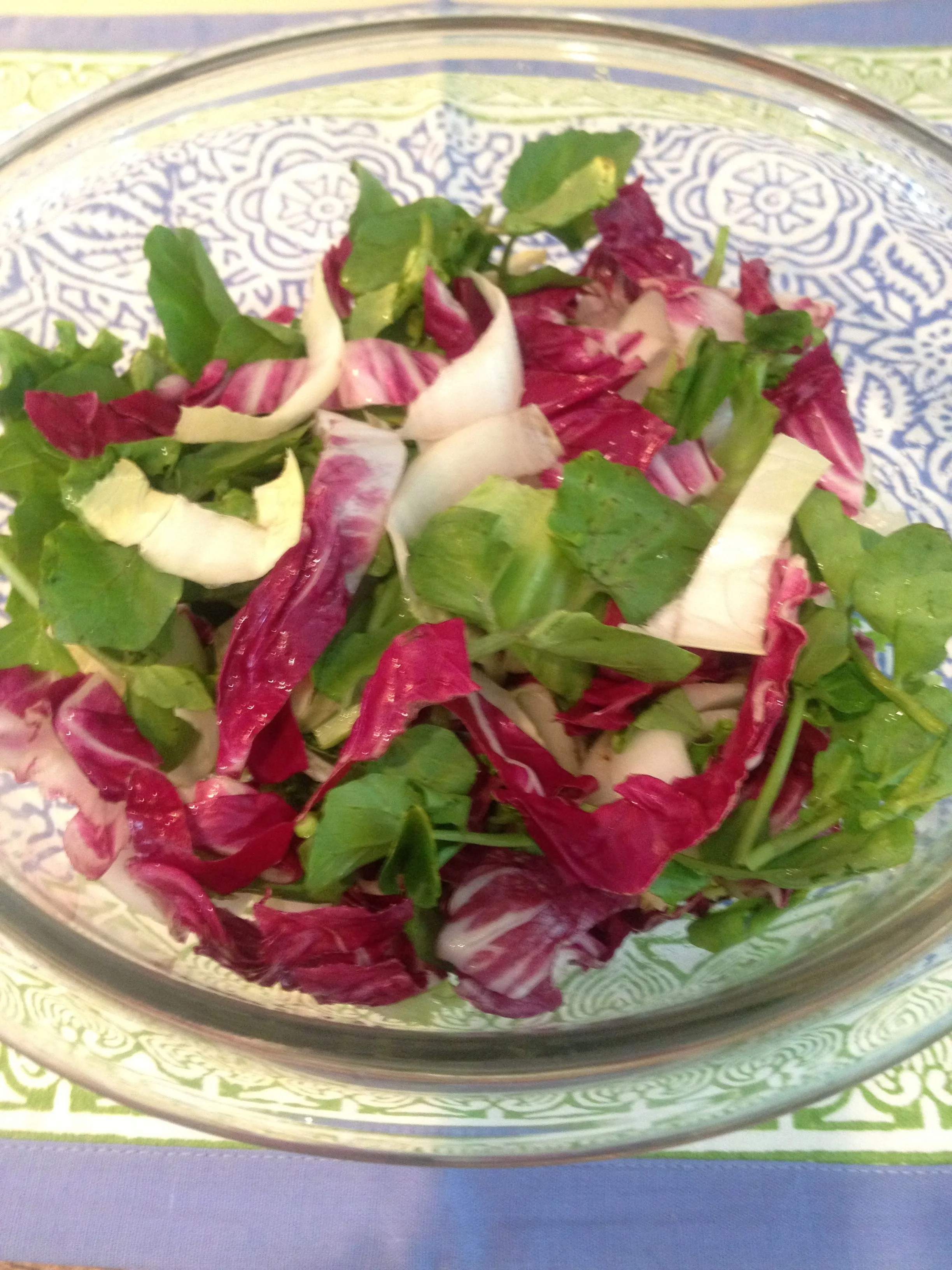Bitter spring greens: dandelion greens and ramps (harvested sustainably)