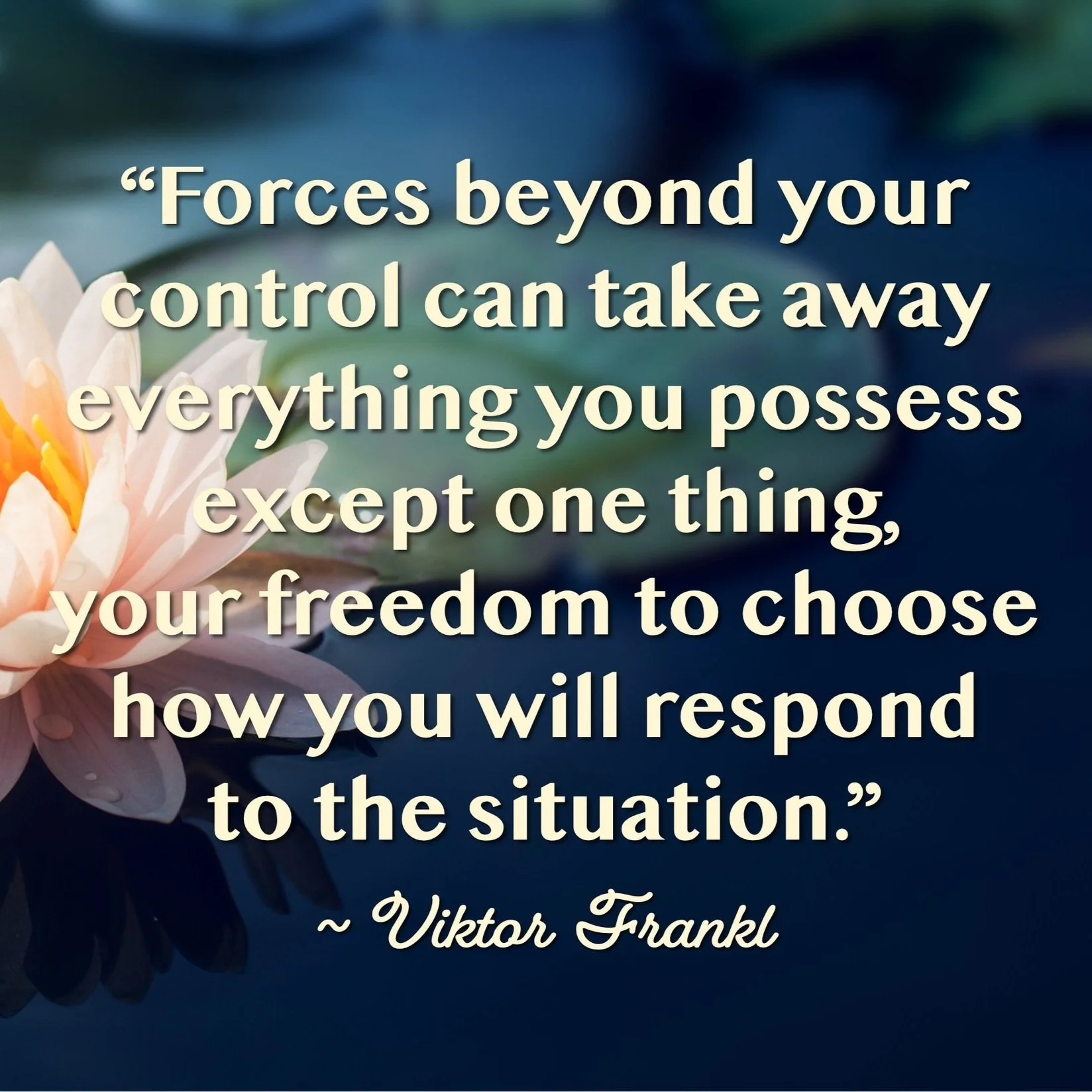 “Forces beyond your control can take away everything you possess except one thing, your freedom to choose how you will respond to the situation.” – Viktor Frankl